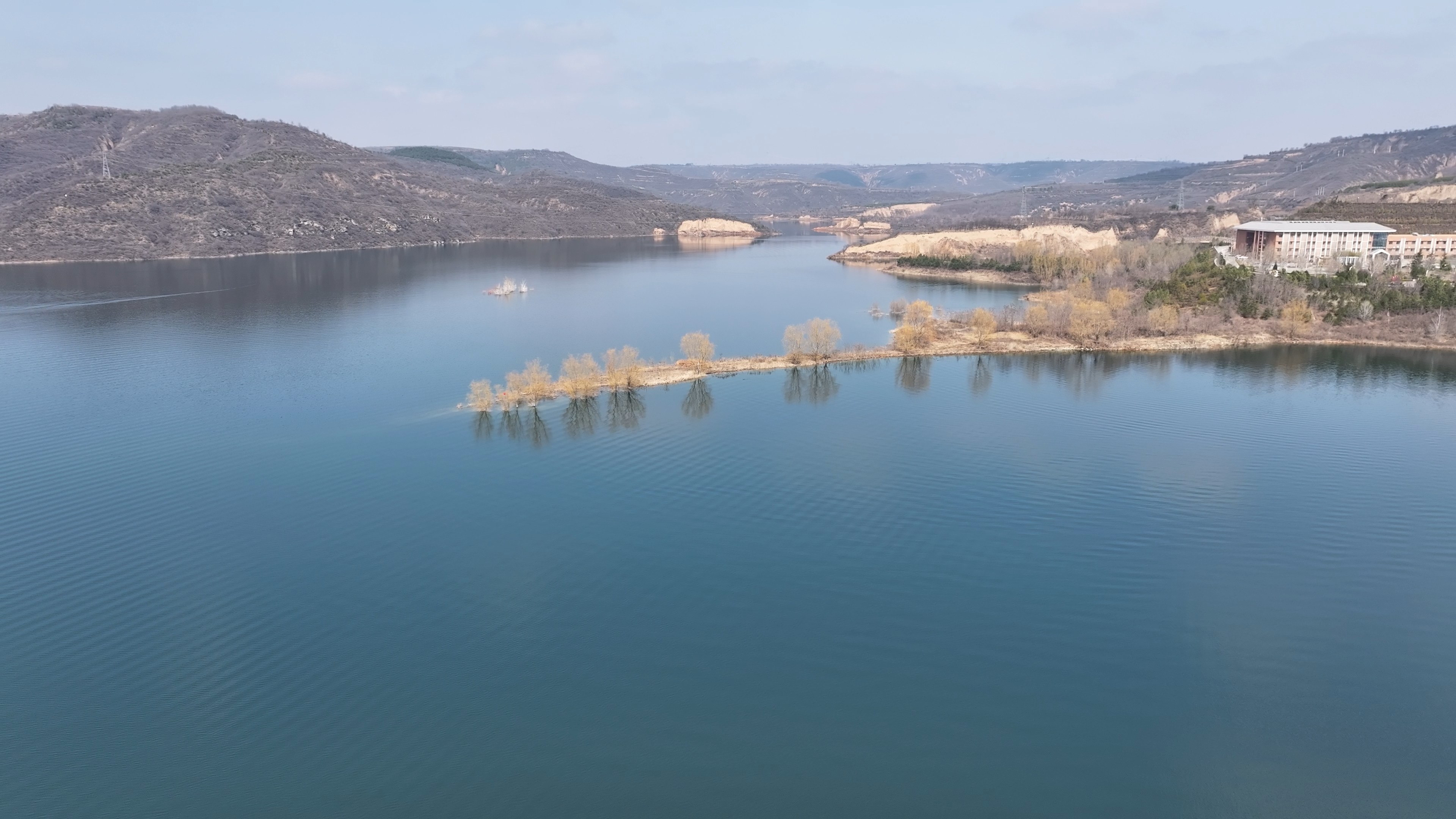 延安市南沟门水库位于黄土高原南部区域,初春时节这里虽还无繁花似锦,但别有韵味。稍微泛绿的山川,澄澈明亮的水面,春天蓄势待发。
