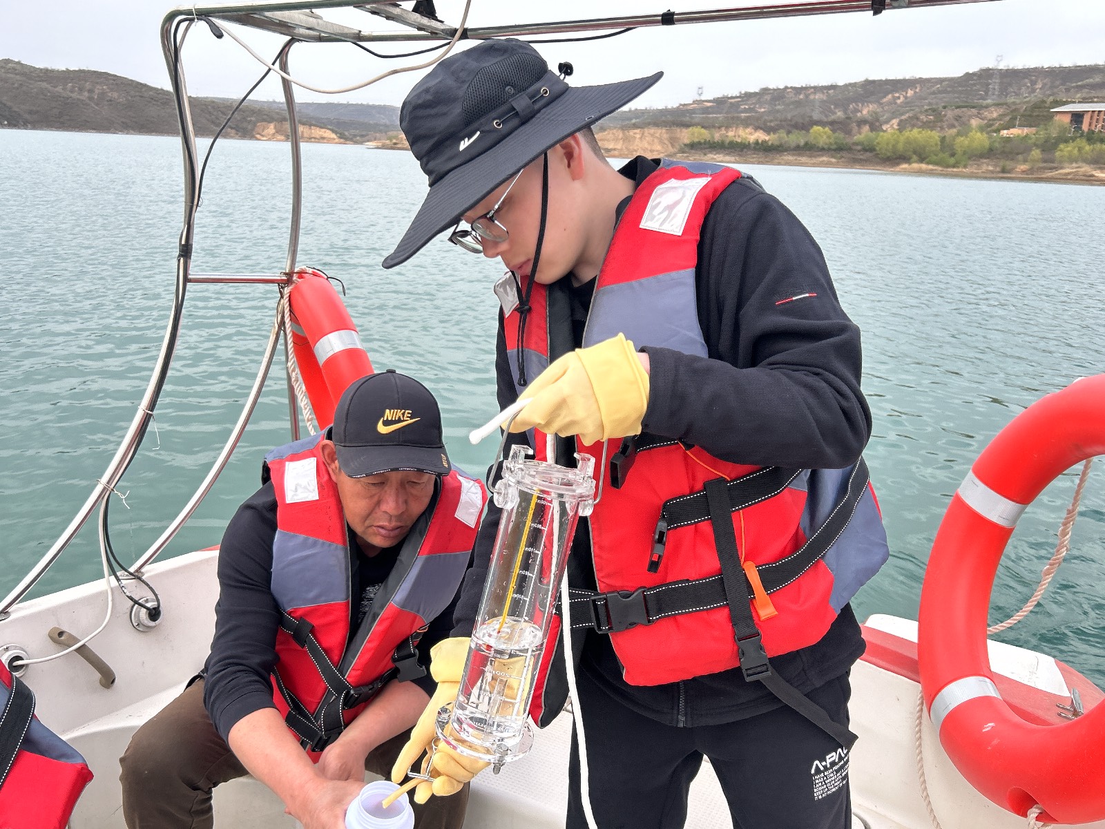 王健团队进行水库水体采样,核算水库水生态产品价值。张博摄